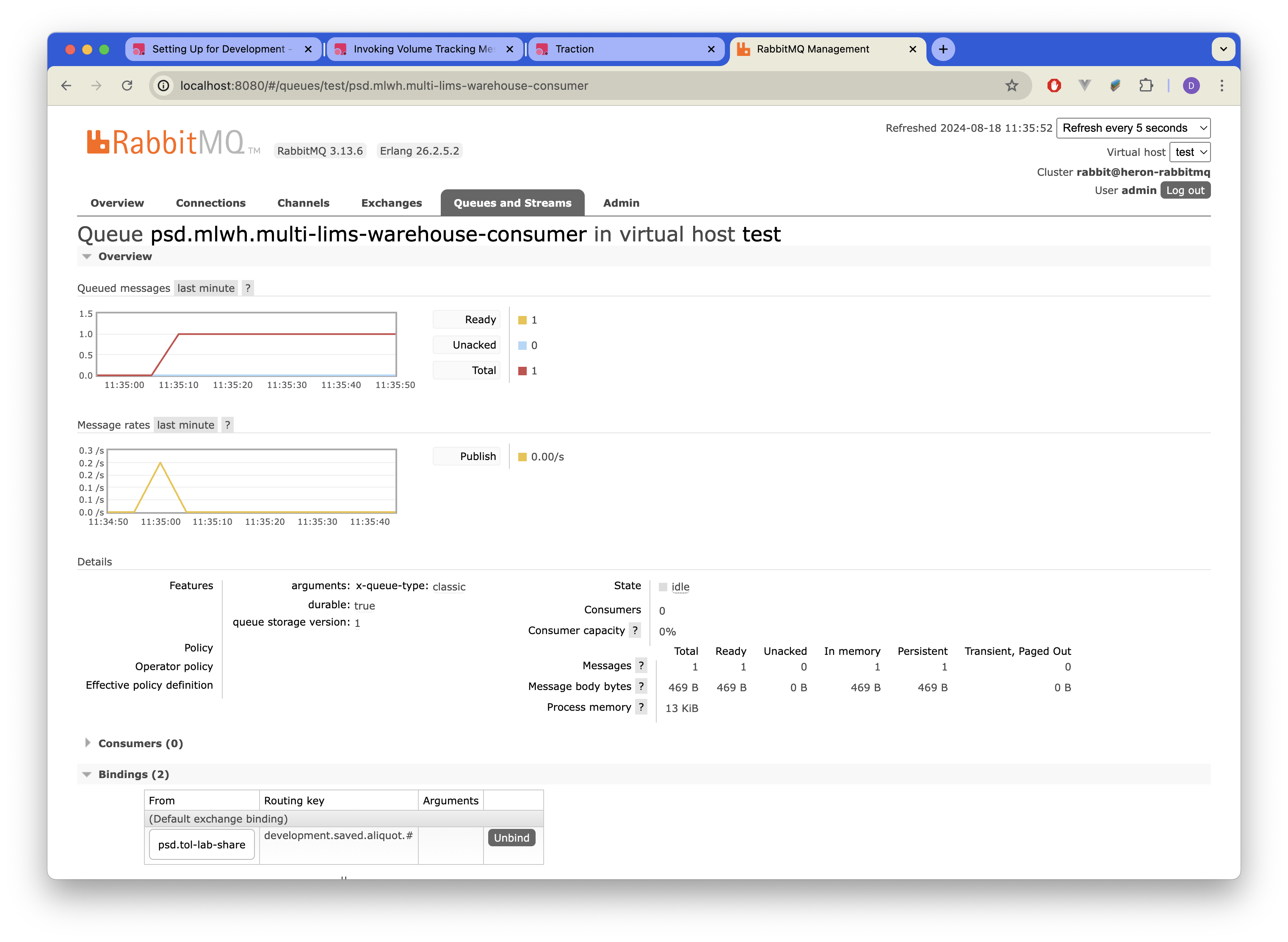 2024-08-18 11:35:00,310 rabbit_messages :77 INFO Published message body: {"lims": "Traction", "aliquot": {"id_lims": "Traction", "aliquot_uuid": "6538ddbe-25e2-46e7-887e-bfc4227fa607", "aliquot_type": "derived", "source_type": "library", "source_barcode": "TRAC-2-1", "sample_name": "sangerId-TOLTESTING-PLATE-1-1-0-1", "used_by_type": "none", "used_by_barcode": "", "volume": 10.0, "concentration": 2.5, "insert_size": 100, "last_updated": "2024-08-18T10:35:00Z", "recorded_at": "2024-08-18T10:35:00Z", "created_at": "2024-08-18T10:35:00Z"}}